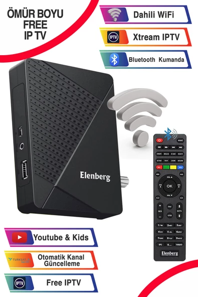 Elenberg Çanaklı Çanaksız İnternet Tv Destekli Ömür Boyu Free IPTV Hediyeli Bluetooth Kumandalı Full HD Uydu Alıcı
