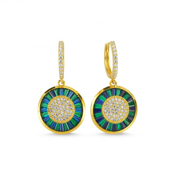 925 Ayar Gümüş Emirgan Taşlı Yeşil Mavi Gümüş Küpe