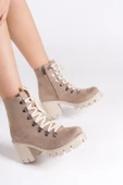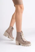 - EMMA Bağcıklı Fermuarlı Ortopedik Taban Topuklu Süet Kadın Bot STT - Ten