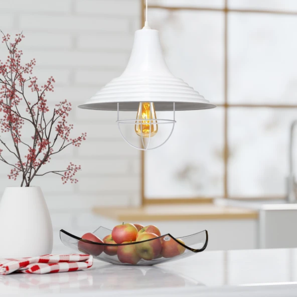 Endüstriyel Solid Metal Kafesli Sarkıt Avize Beyaz Mutfak Ofis Depo Antre