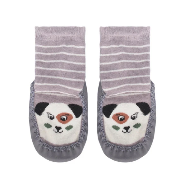 Erkek Çocuk Gri Köpekcik Desenli Çarıklı Çorap