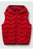 Erkek Çocuk Kırmızı Logo Detaylı Kapüşonlu Yelek