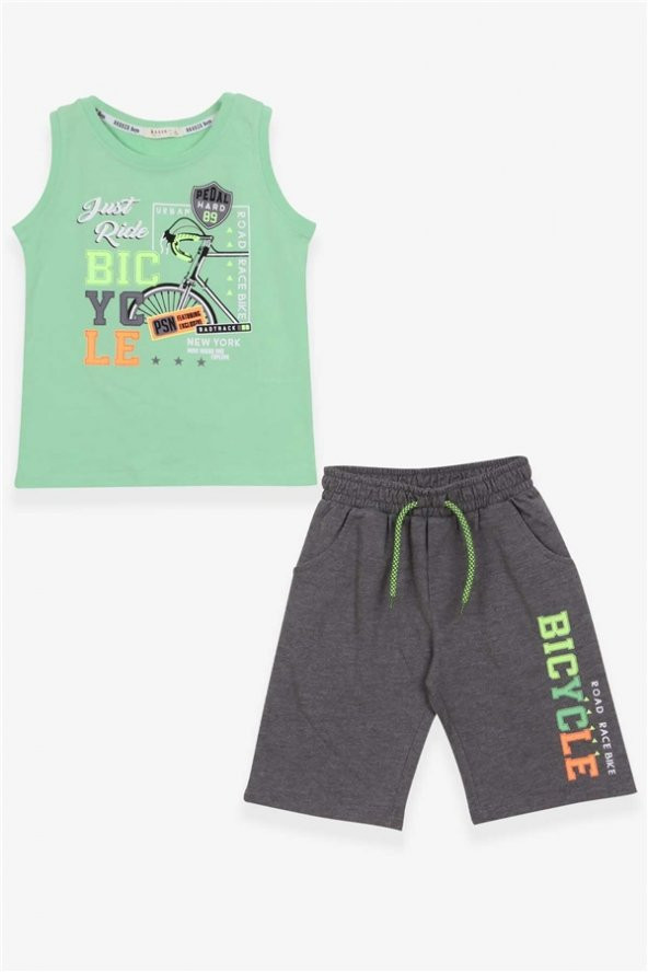 Erkek Çocuk Şortlu Takım Bisiklet Baskılı Mint Yeşili Modi (5-10 Yaş)