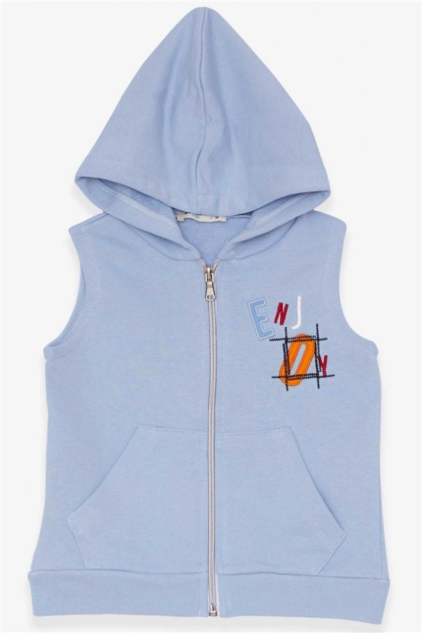 Erkek Çocuk Yelek Nakışlı Açık Mavi Soft (3-8 Yaş)