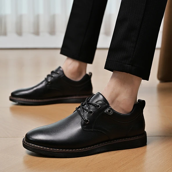 Erkek Deri Casual Brogue Ayakkabı (Siyah)