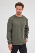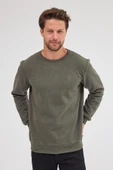 Erkek Haki Standart Fit Normal Kesim Pamuklu Basic Bisiklet Yaka Sweatshirt MTLCE113-Haki