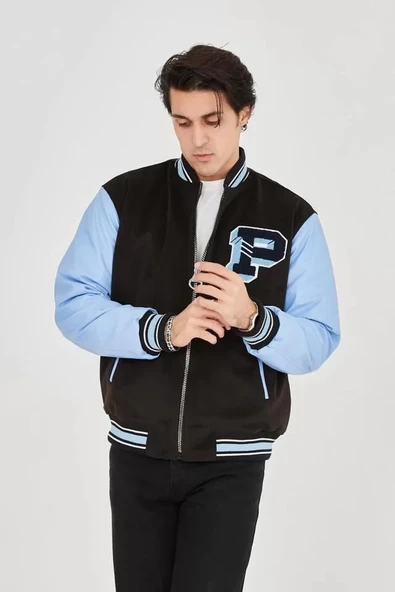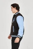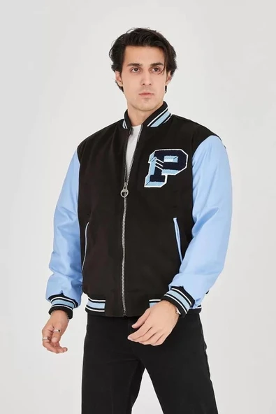 - Erkek İçten Elyaf Ve Astarlı Kolları Suni Deri Ceket - Mavi