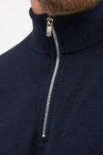 Ana Sayfa Giyim & Aksesuar Erkek Giyim Sweatshirt Bisiklet Yaka Erkek Lacivert Standart Fit Normal Kesim Pamuklu Yarım Fermuarlı Dik Yaka Pamuklu Sweatshirt
