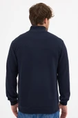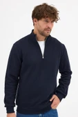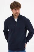 Erkek Lacivert Standart Fit Normal Kesim Pamuklu Yarım Fermuarlı Dik Yaka Pamuklu Sweatshirt