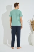 Erkek Mavi Bisiklet Yaka Kısa Kol Yuvarlak Yaka Cepli Yazlık Pamuklu Pijama Takımı