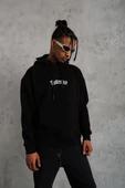 Ana Sayfa Giyim & Aksesuar Erkek Giyim Sweatshirt Kapüşonlu Erkek Üç İplik Baskılı Kapüşonlu Sweat - Siyah