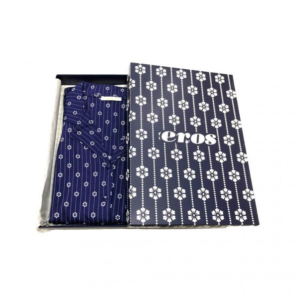 EROS Lacivert Desenli Pamuk Gömlek Pijama Takımı