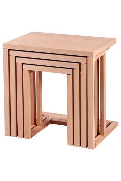 Evim-E Aksesuar 4'lü C Zigon Sehpa Tekerlekli Hâm Cilasız Tamamı Ahşap