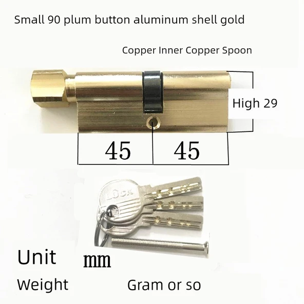 Evrensel 70mm Uzun Kapı Kolu Koruyucu - Erik Butonu Küçük 90 Altın Alüminyum Kasa Bakır İç Çekirdek, 35-45mm Kapı Kalınlığı