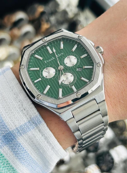- FA.0622 14179M.05 FA.0622 14179M.05 Gümüş renkte ve çelik kasalıdır. 43 mm kasa çapına sahiptir. Saatimizin kordonu ise metal malzemeden oluşmaktadır ve Gümüş renktedir. Yuvarlak kasa şekline sahip saatimizin analog ve Yeşil renk kadranının altında, yıllarca sorunsuz kullanacağınız Quartz teknolojisi mevcuttur. Saatimizin su geçirmezliği 3 Atmdir. FRANK ALEX marka saatimiz, 2 yıl garantilidir. Ürünümüz orijinal kutusu ve garanti belgesiyle birlikte paketlenerek sizlere gönderilir.