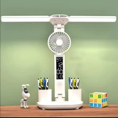 Ana Sayfa Ev Dekorasyon Aydınlatma Masa Lambaları FANLI ÇOK FONKSİYONLU 3 RENK LED IŞIK MASA LAMBASI MASA SAATİ KALEMLİK TERMOMETRE