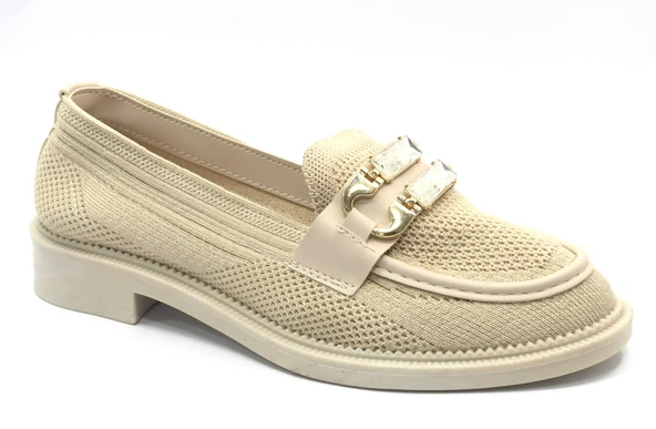 Feles Taş Toka Detaylı Triko Loafer Kadın Babet Ayakkabı