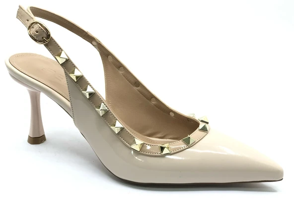 Feles Zımba Şerit Detaylı Arkası Açık Stiletto Kadın Topuklu Ayakkabı