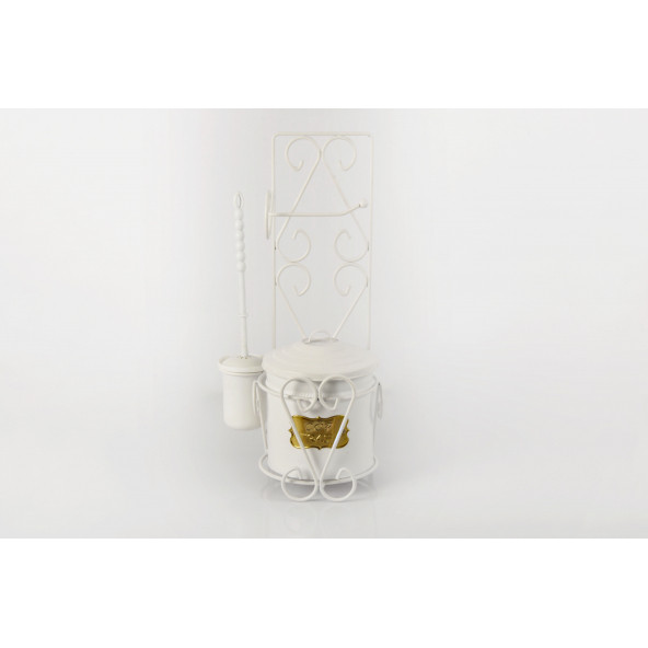 Ferforje Beyaz Renk Wc Tuvalet Kağıdı Askısı Tuvalet Fırçalı Çöp Kovası