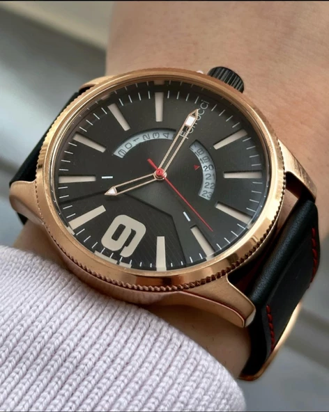 Ferrucci Erkek Deri Kordon Kol Saatİ Siyah Rose