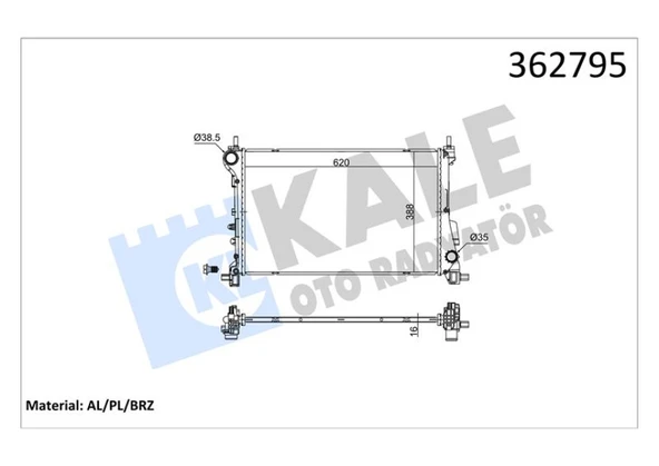 Fiat Motor Su Radyatoru Fiat Egea 1.6 E-Torq 15> (mt) (brazıng) (620x388x16) - Kale 362795