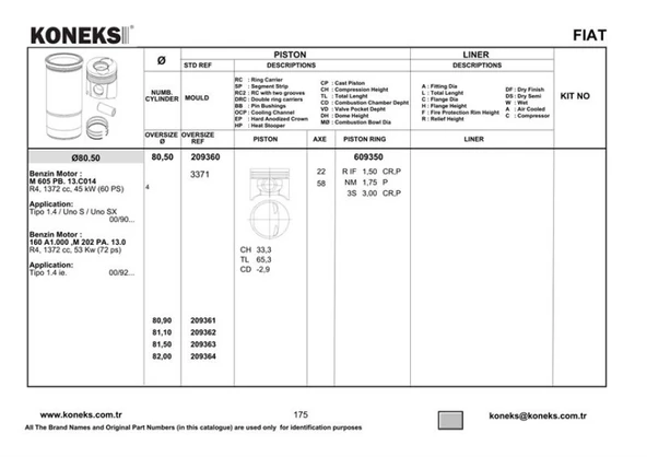 Fiat Piston+segman 80,5mm Std Tipo - Uno 70 - Palıo / 1.4 İe (m605pb 13 C014) - Koneks 209360