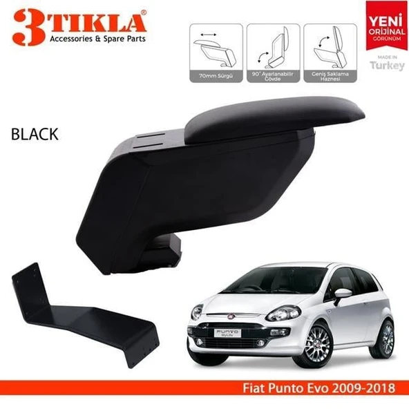 Fiat Punto Evo 2009-2018 Delmesiz Çelik Ayaklı Siyah Kolçak Kol Dayama