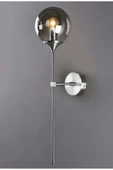 Fico Home Modern Tasarım Pilli Aplik Kablosuz Tak Çalıştır Aç Kapa Butonlu Krom Gövde Füme Camlı Aplik