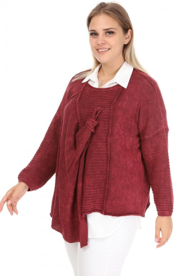 Fierte Kadın Büyük Beden Kazak Sws2346 Yuvarlak Yaka Uzun Kol Spor Triko Yelek Bordo Antrasit Gri Haki Lacivert Mor