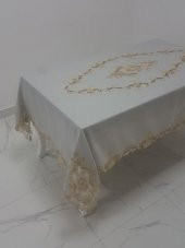 Finezza Perla Lüx Dantelli Simli Keten Kumaş Gri Masa Örtüsü 160x230 cm - 1157