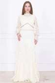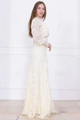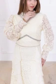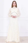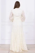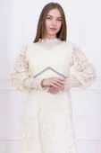 - Fırfır Ve Taş Detaylı Dantel Abiye Elbise 2757-Bej