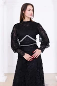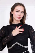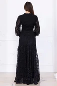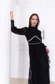 - Fırfır Ve Taş Detaylı Dantel Abiye Elbise 2757-Siyah