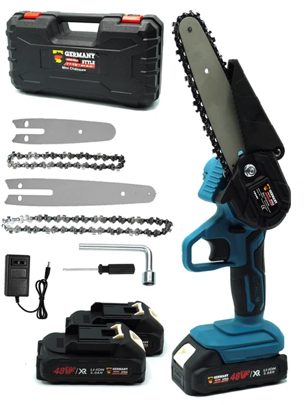 Germany Style 2568VFX Premium Çift Akülü Şarjlı Dal Budama Dal Kesme Testeresi Çift Pala Çift Zincir