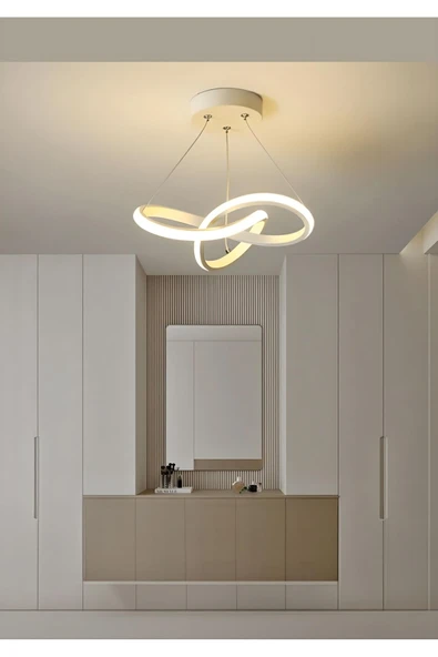 Dekorluna Modern Bolivia Tekli Beyaz Sarkıt Led Beyaz Power Ledli Salon Mutfak Oda Hol Ledli Avize