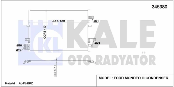 KALE markası Ford Klima Radyatörü - 5 İleri Otom Sanz - Kal 345380 (KAL 345380 kodlu) 2S7H 19E908 AD OEM kodlarına sahip FORD araçları için uyumlu olan bu ürün parcayuvasi.com'da uygun fiyatlarla, hızlı ve güvenli kargo ile hizmetinizdedir.