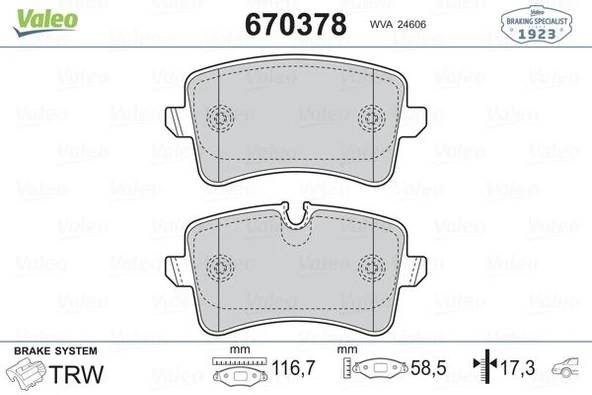 Vag Fren Balatası Arka A4 08>15 A5 07> Q5 10>17 Q5 09>12 - Valeo 670378