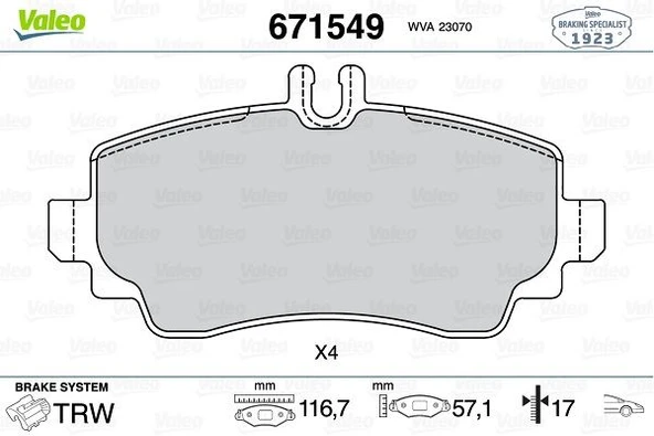 Mercedes Fren Balatası On A-Class W168 99>04 - Valeo 671549