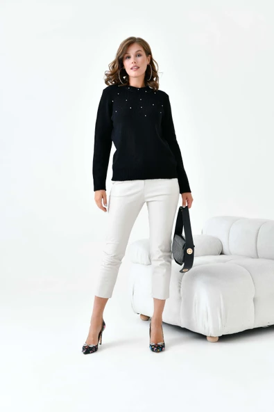 FTZ Women Kadın Boncuk İşlemeli Kazak Siyah 20741