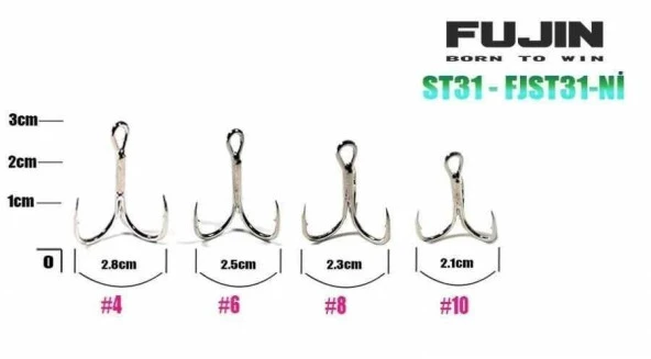 Fujin ST31 Üçlü Maket Balık Kancası Nickel No:8