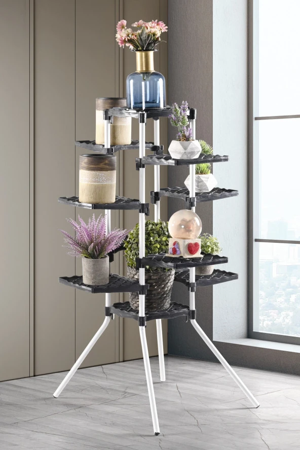 Sebro 10 Raflı Dekoratif Çiçek Standı Çiçek Bahçesi Saksı Standı