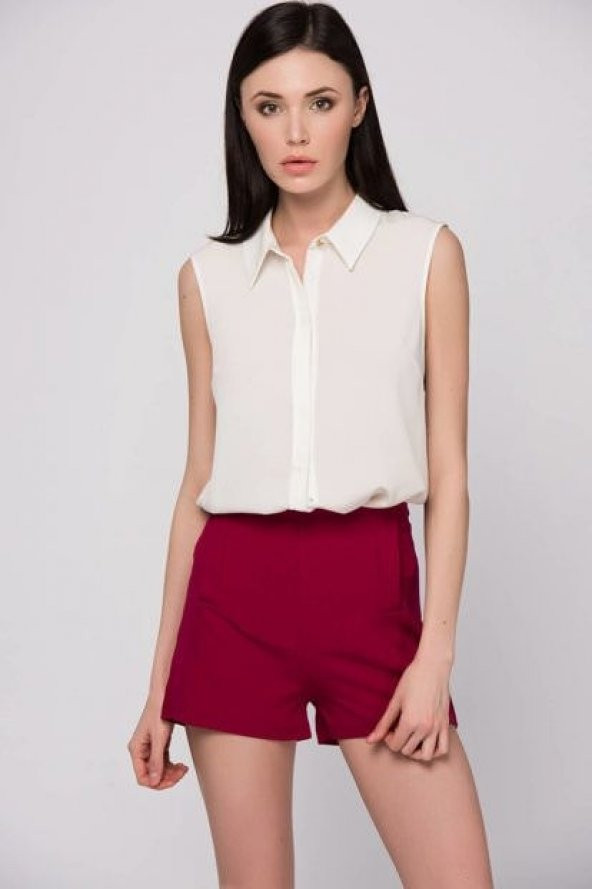 Fuşya Sus Cepli Atlas Krep Sort | Şrt14056
