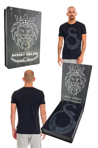 Galatasaray Orijinal Ata İmza T-Shirt Siyah Kişiye Özel Tasarım Ahşap Kutulu