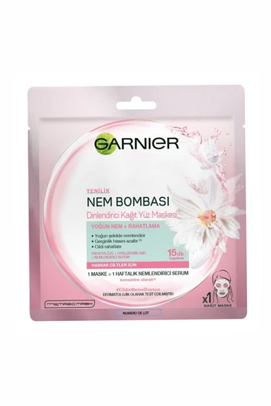 • Garnier Hassas Ve Kuru Ciltler Için Nem Bombası Dinlendirici Kağıt Yüz Maskesi grs45482502365