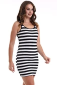 Genç Kaşkorse Kalın Askılı Çizgili Yazlık Saran Triko Elbise