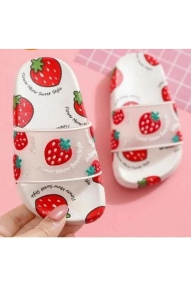Gezer Kız Çocuk Byeaz Kırmızı Çilekli Günlük Terlik