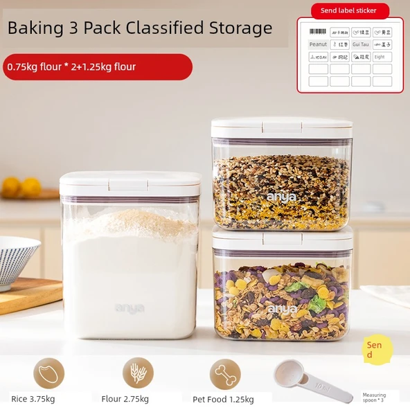 Gıda Sınıfı Kapaklı Un ve Pirinç Saklama Kabı - Kombinasyon 3, 1.5kg * 2 + 2.5kg