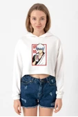 Gintama Anime Gintoki Fruit Juice Ekru Kadın Crop Kapşonlu