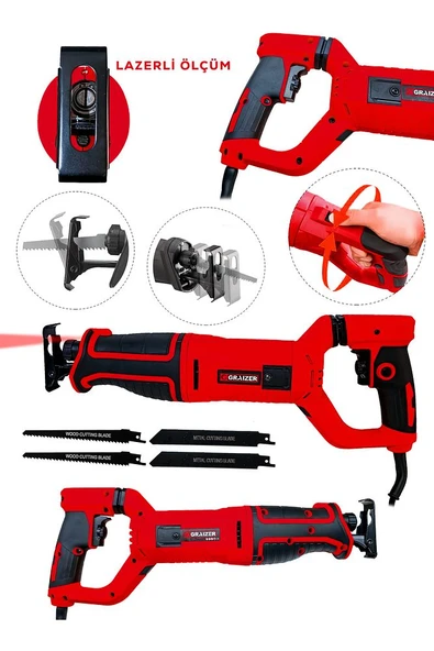 1000W 6 Kademe Devir Ayarlı Bakir Sargılı Kemik Kesme Tilki Kuyruğu Testere Lazerli-Kırmızı