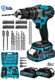 Graizer 21v Çift Akülü Vidalama Çelik Mandren Kömürsüz Motor Darbeli Şarjlı Matkap Mavi