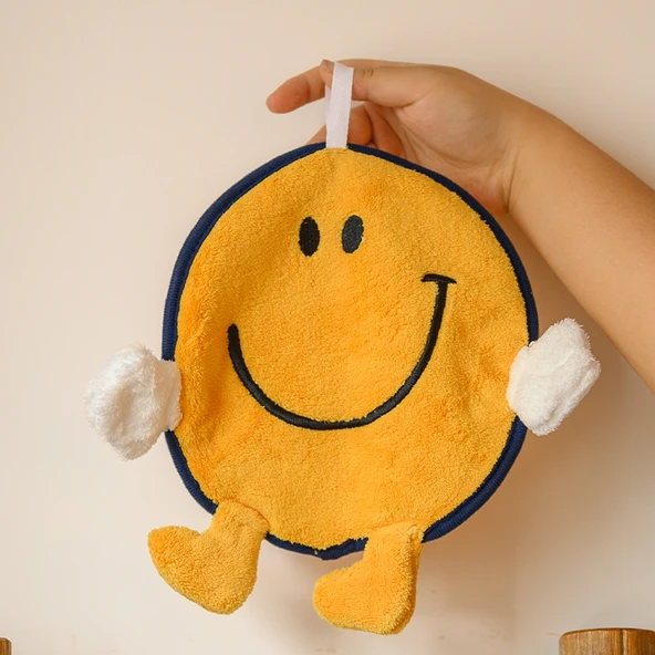 Gülümseyen Yüz Coral Polar El Havlusu - Sarı - 25x27cm